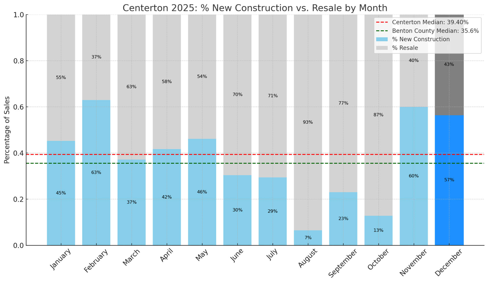 Centerton ended the year slightly above balanced, while many surrounding markets stayed tighter.