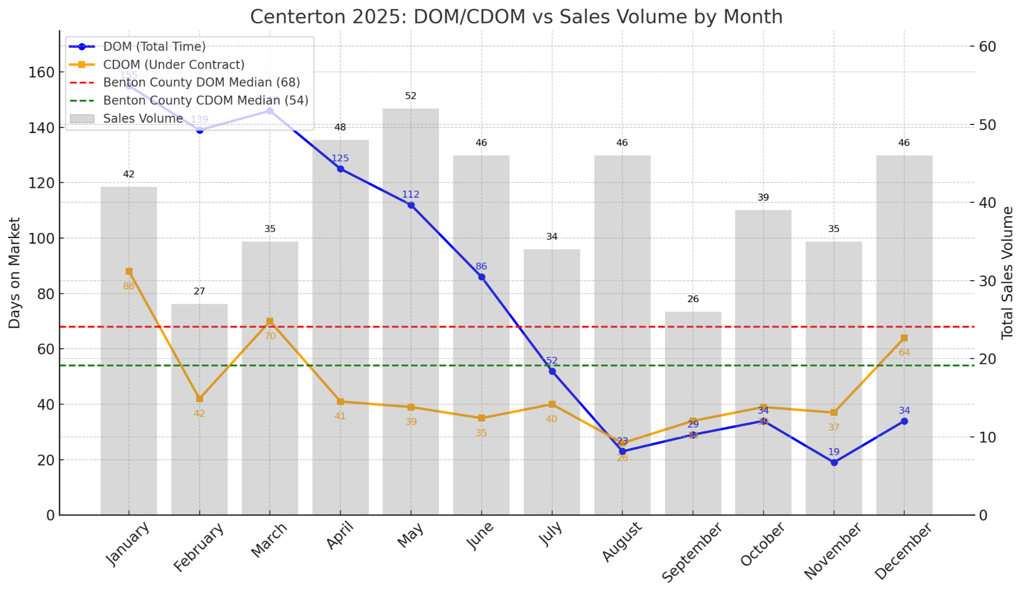 By Q4, median DOM stabilized while median CDOM declined. That tells me sellers learned the market quickly.