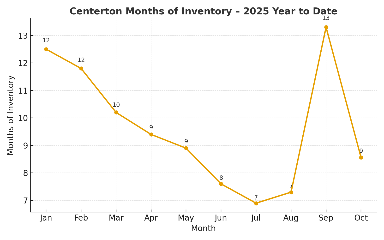 Centerton’s months of inventory dropped to 8.56 in October, improving from 13.3 in September.