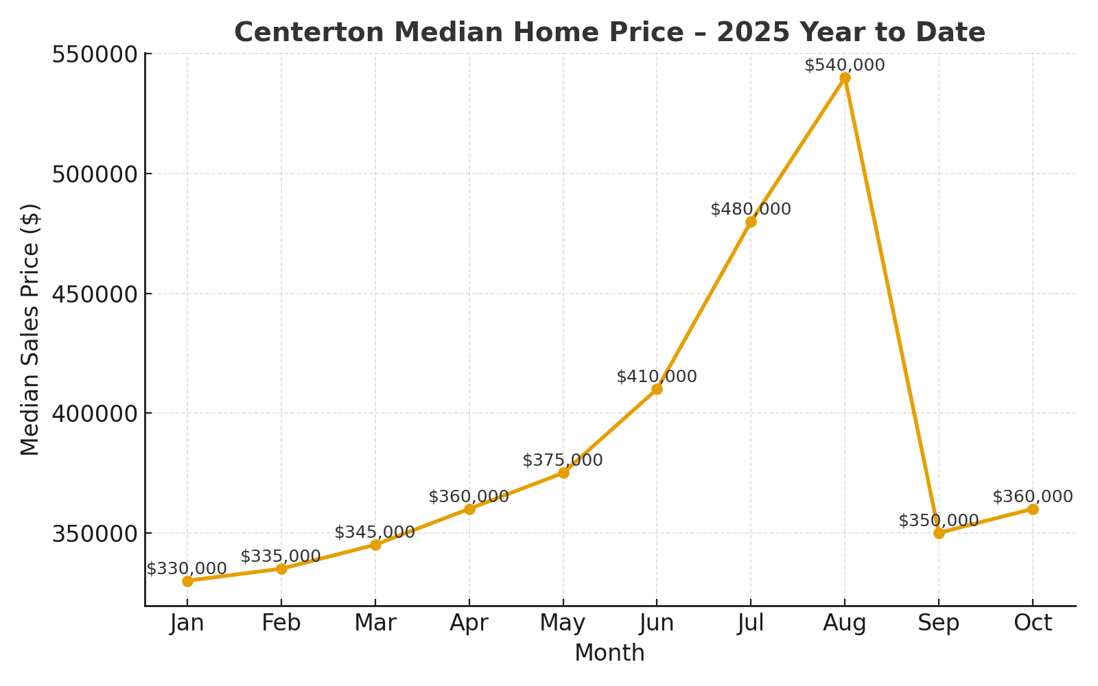 Centerton’s median sales price increased slightly to $360,000 in October, up from $350,000 in September. This minor gain reflects steady demand even as activity slows entering the holiday season.