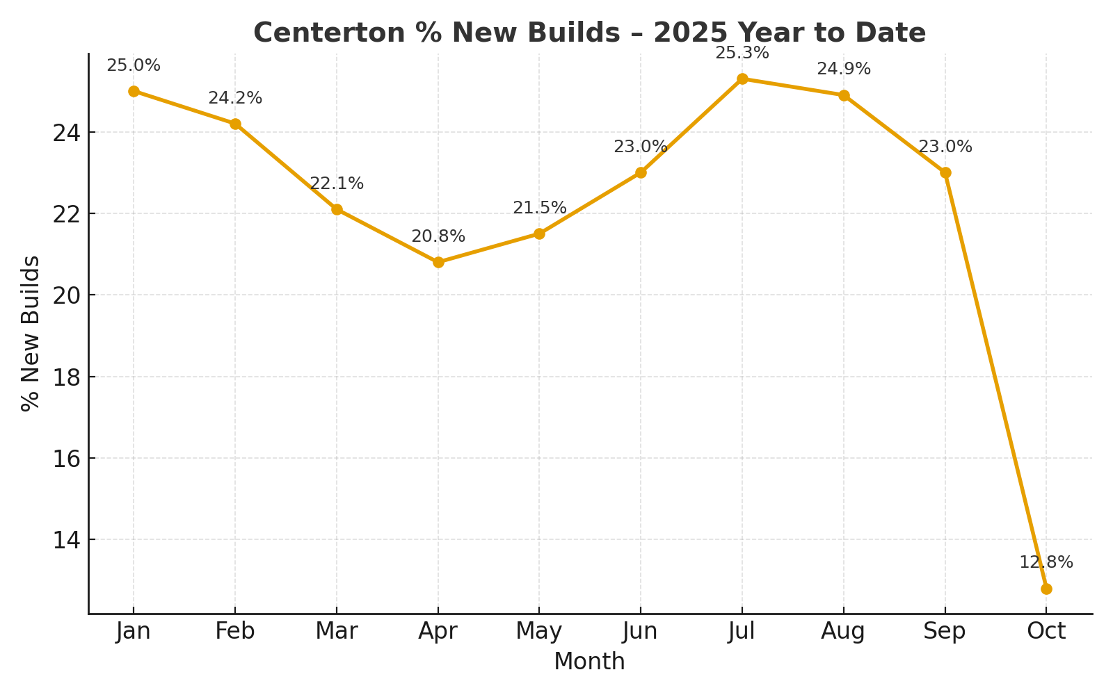 And do not let the dip in closings fool you. Roughly 63 percent of Centerton’s active listings right now are new builds, showing just how dominant this segment is in our current inventory mix. Builders remain active, and buyers have more opportunity than ever to secure a home that fits their lifestyle and budget before the year ends.