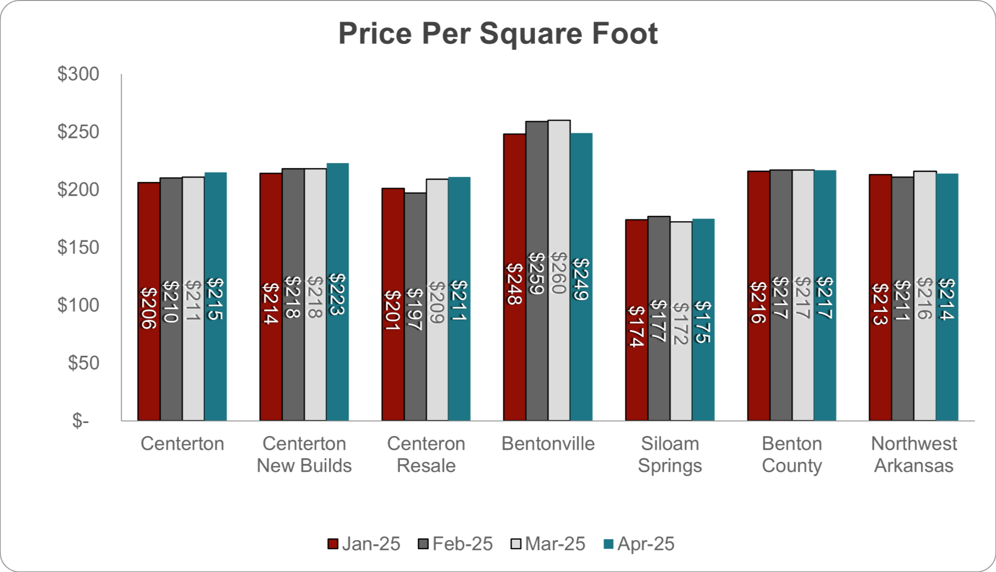 Centerton: Rose $4/sq ft from $211/sq ft in March to $215/sq ft in April