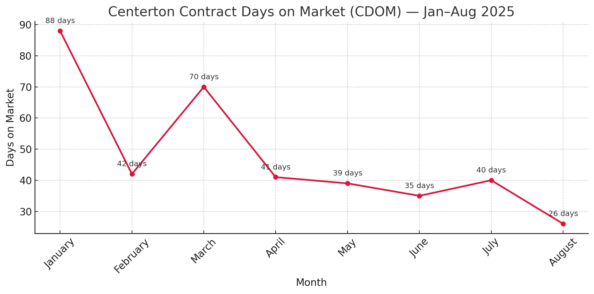 Despite fewer new builds, Centerton homes sold the fastest in August, reflecting strong buyer demand for move-in-ready options.